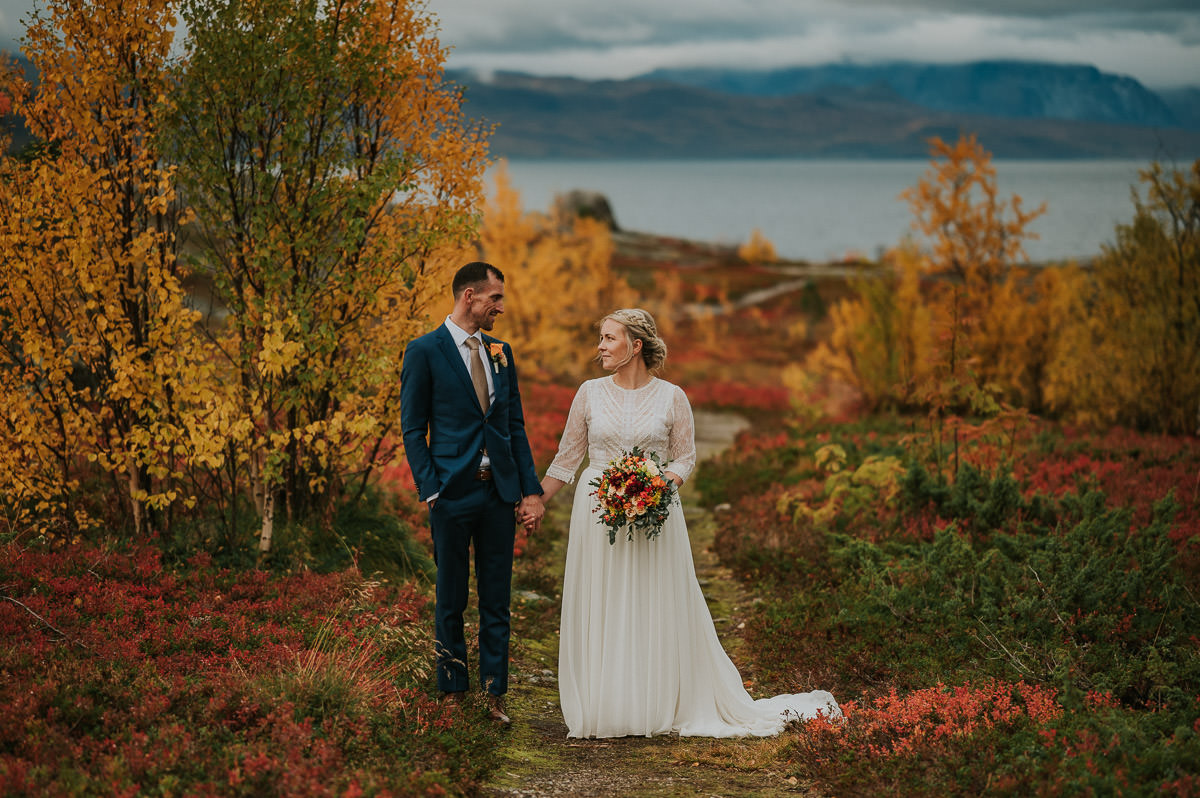 Bilder av brudeparet på flere valgfrie locations i Alta